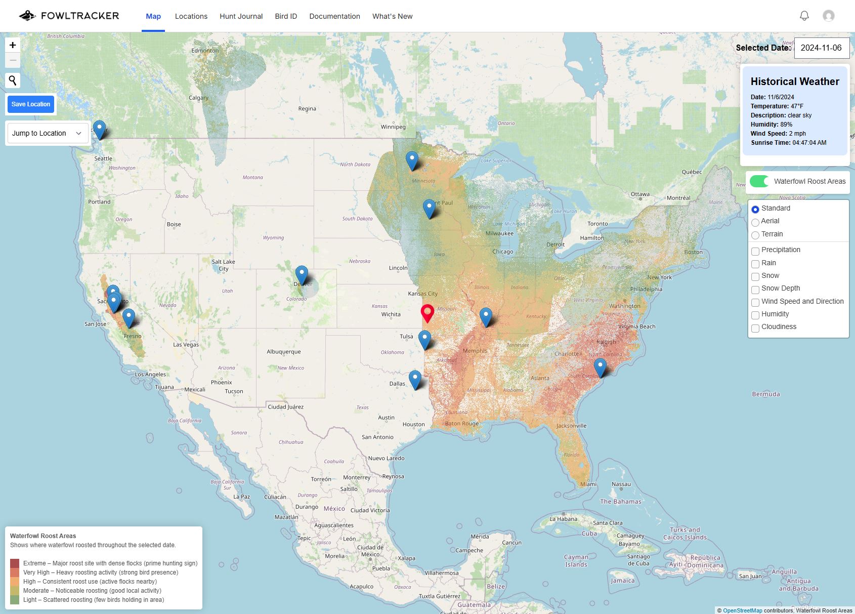 We've made dramatic improvements to the mobile experience in FowlTracker, specifically on the Map page. It should now be far more mobile-friendly. In order to do this, we reduced the amount of functionality on mobile and limited it only to waterfowl density. If you want the full experience, you'll want to use FowlTracker on your computer. We also fixed a few bugs such as: